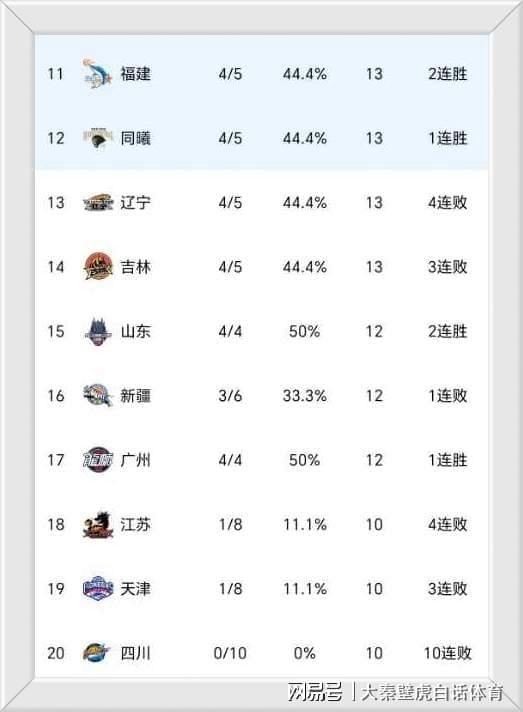 ③難嘗一勝的前總冠軍四川隊繼續(xù)沉淪,目前0勝10負繼續(xù)墊底。