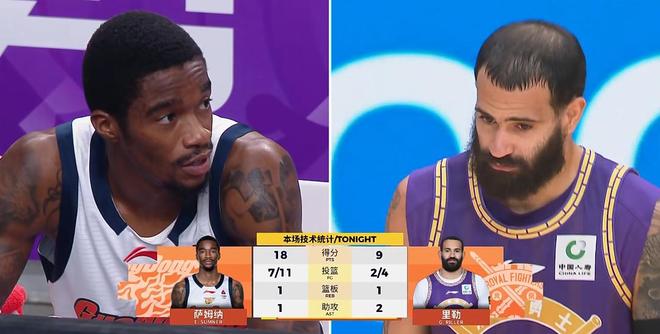 首節(jié)薩姆納11中7獨砍18分,一己之力帶領廣東從落后7分打出一波18-9反超北控2分,風頭蓋過里勒大神。