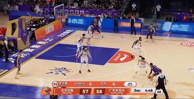 第三節(jié)薩林杰繼續(xù)先發(fā)開局再飚進三分,隨后廣東連著4回合沒有得分,北控在里勒、鄒雨宸弧頂連得7分帶領下反超53-49,但好消息是,朱松瑋4犯下場。