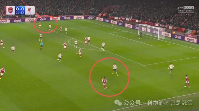 今天利物浦的布陣,無球時維爾茨與索博斯洛伊幾乎復(fù)制了上賽季客場對曼城時,瓊斯和索博斯洛伊的“雙假9號”,頂在最前引領(lǐng)前場逼搶。其中索博斯洛伊盯阿森納后腰蘇維門迪。